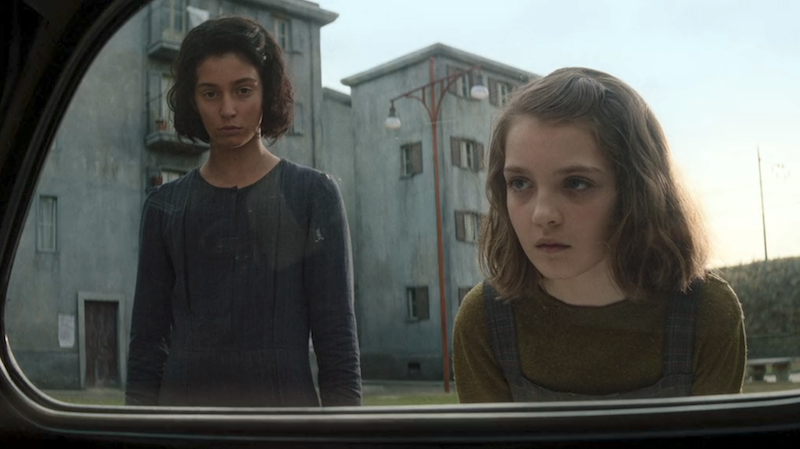 What I appreciate most is how the sequence manages to stay true to the novel by foreshadowing evil (the Fiat) and hinting at the distance between Lila and Lenù. Although they are the same age, Lila has been thrust into a new phase of life where she's expected to help support her family; Lenù is still in school, so her situation has remained more or less the same. Maybe this is why Lenù sees herself as a child in her dream.