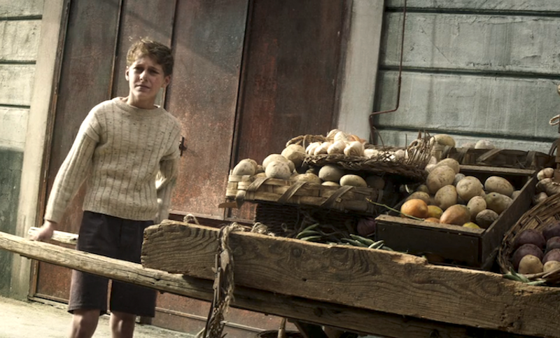 The cast swap is handled exceptionally well, with the young actors seamlessly morphing into their older counterparts. In one shot, child Enzo begins pushing his fruit and vegetable cart out of frame; after the cut, he's believably aged several years.