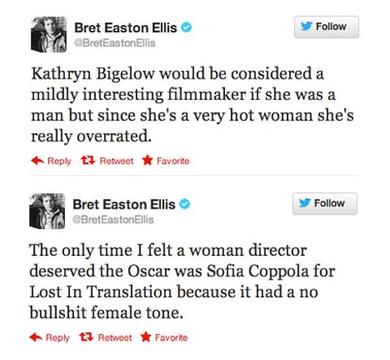 In the case of "American Psycho," the violence against women is always sexualized while the violence against men never is. BUT... in Mary Harron's movie, this choice is deliberate and made to prove a point. If we give Bret Easton Ellis the benefit of the doubt, it's probably also a deliberate choice on his part, too. The only difference is that his own, deeply ingrained misogynistic tendencies made it hard for him to know when to stop. Let us not forget these Tweets: