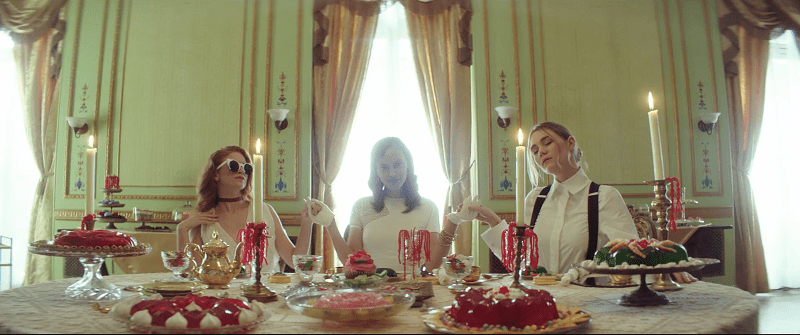 In the wake of this revelation, some of the nonsensical begins to make sense. Adult Daphne can't get over the trauma that she experienced as a child. In order to gain some semblance of control over her situation, she forces her friends to reprise their old characters and abide by her 3 rules. This time, Daphne isn't the one to experience a violent injury. Tilda takes a blow to the knee; Petula's cheeks are slashed like the Joker's. None of those injuries last, though. In subsequent scenes, all evidence of harm disappears.