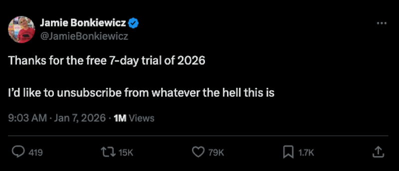 Happy New Year! Wasn't it fun to wake up to the news of Trump's Venezuelan coup on the third day of 2026? I'm not going to dwell on that, though. I'm writing this on January 5th, coincidentally my wedding anniversary, so who knows what other hell is in store for us during the five days before I hit "publish." It feels weird not to mention world events that will alter the course of our lives, but I'm also not trying to turn a weekly little treat into yet another reminder of the neverending horrors. Moving on!