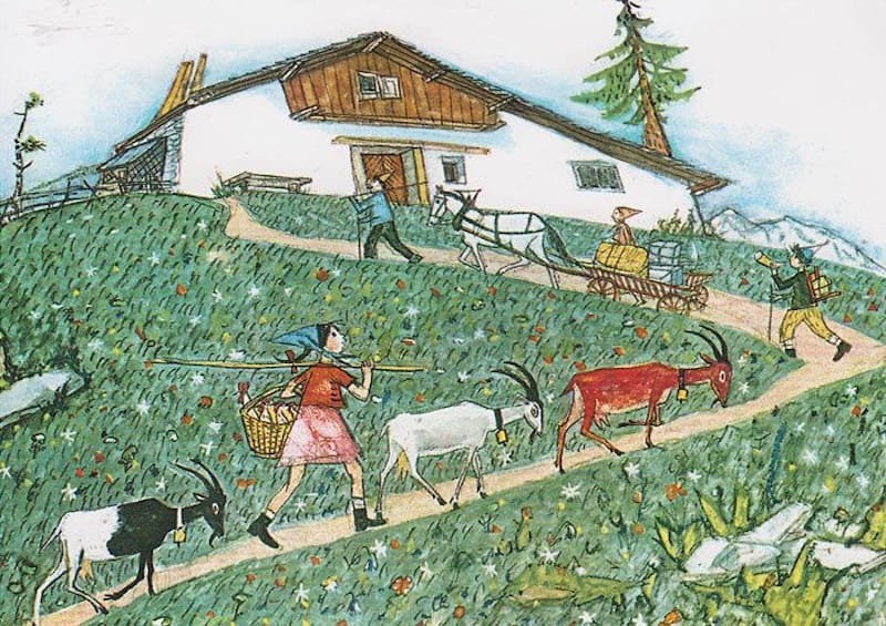 After decades of success in the city, he moved back to his beloved hometown of Trun in 1960 and, inspired by the mountains, created the children's book series that would cement his legacy. In 1966, he won the Hans Christian Andersen Award for illustration. In 1985, he died, probably in his sleep, at the age of 82. If bad things happened in this motherfucker's life, the internet doesn't know about them. His career and overall existence seem charmed, and his idyllic children's illustrations reflect that. Am I unnecessarily idolizing the Swiss because I went on vacation there and had a nice time? Probably.