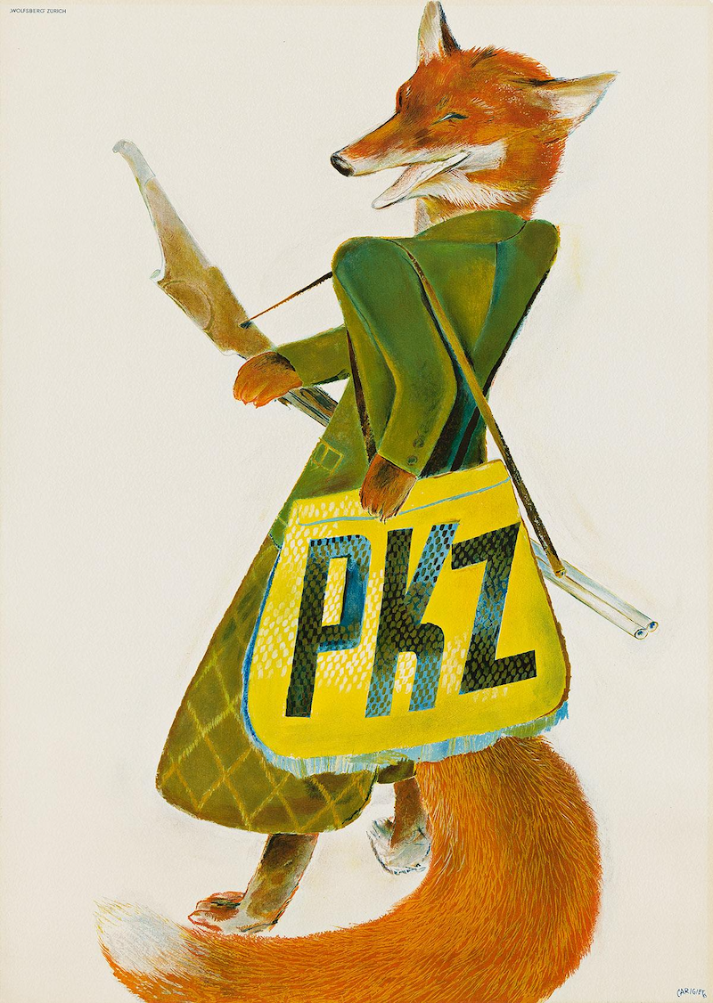 Prior to my trip, I wasn't familiar with Alois Carigiet or the series of books he did with writer Selina Chönz about a little boy named Ursil who lives in the Swiss Alps. Carigiet was born in 1902 in Trun, Switzerland, a small mountain village in the canton of Graubünden. When he was nine, his family moved to Chur, a bigger city with none of the rural charm he adored. As an adult, he migrated to Zurich, an even bigger city, to work as a graphic designer at an advertising agency where he created many iconic posters across industries like fashion, travel, and education. Some of my favorites were for men's fashion brand, PKZ: