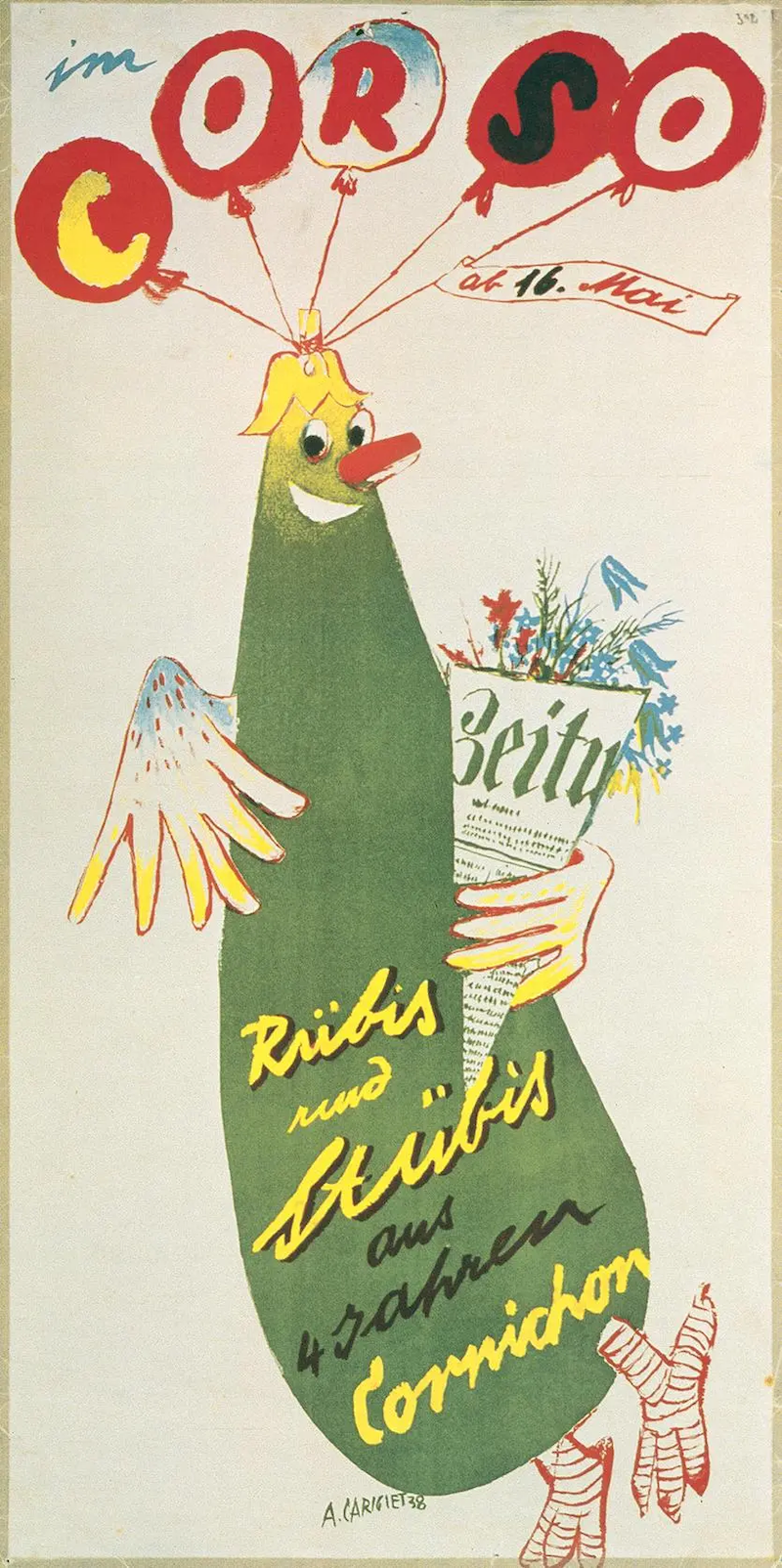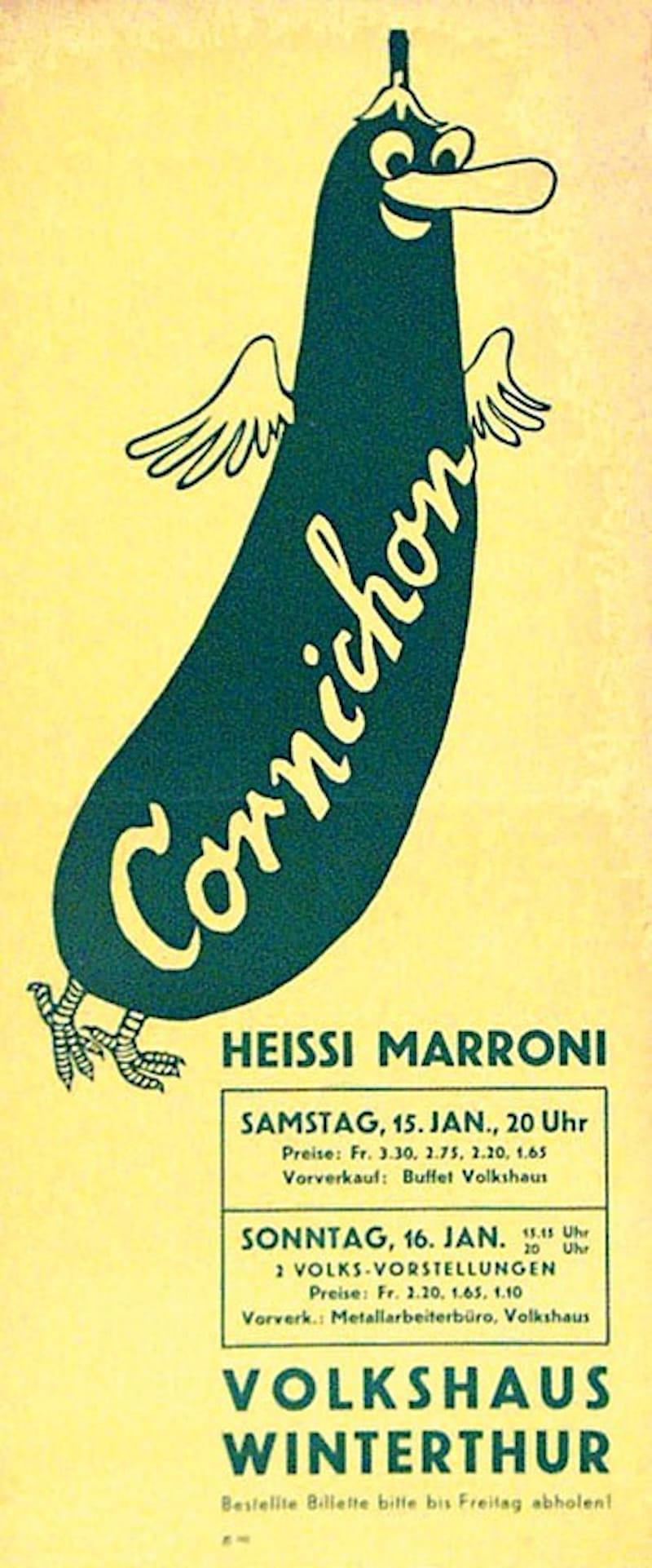 In 1934, he co-founded Cabaret Cornichon (great name), an entertainment group known for its politically-charged performances and opposition to fascism. During this time, he designed sets, costumes, and these stupid/fun pickle posters: