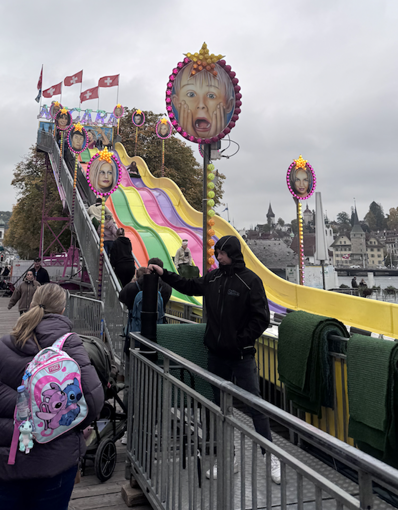 - These unhinged celebrity portraits on a carnival slide in Lucerne. Please tell me who you think they're supposed to be in the comments. My husband says bottom right is Glen Powell 🤷🏼♀️ Did Cecilia Giménez do these?