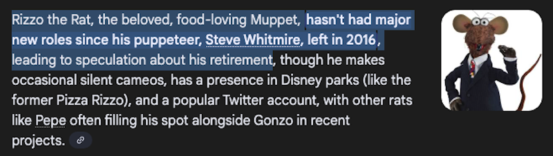 - "The Muppet Christmas Carol" (Henson, 1992). Rizzo was robbed of a well-deserved Oscar nomination for his beloved performance in this esteemed classic. Every time I wake up with a sleep injury, I instantly think, "God save my little broken body." I just Googled "What is Rizzo the Rat up to" and AI returned this shocking (legit) information: