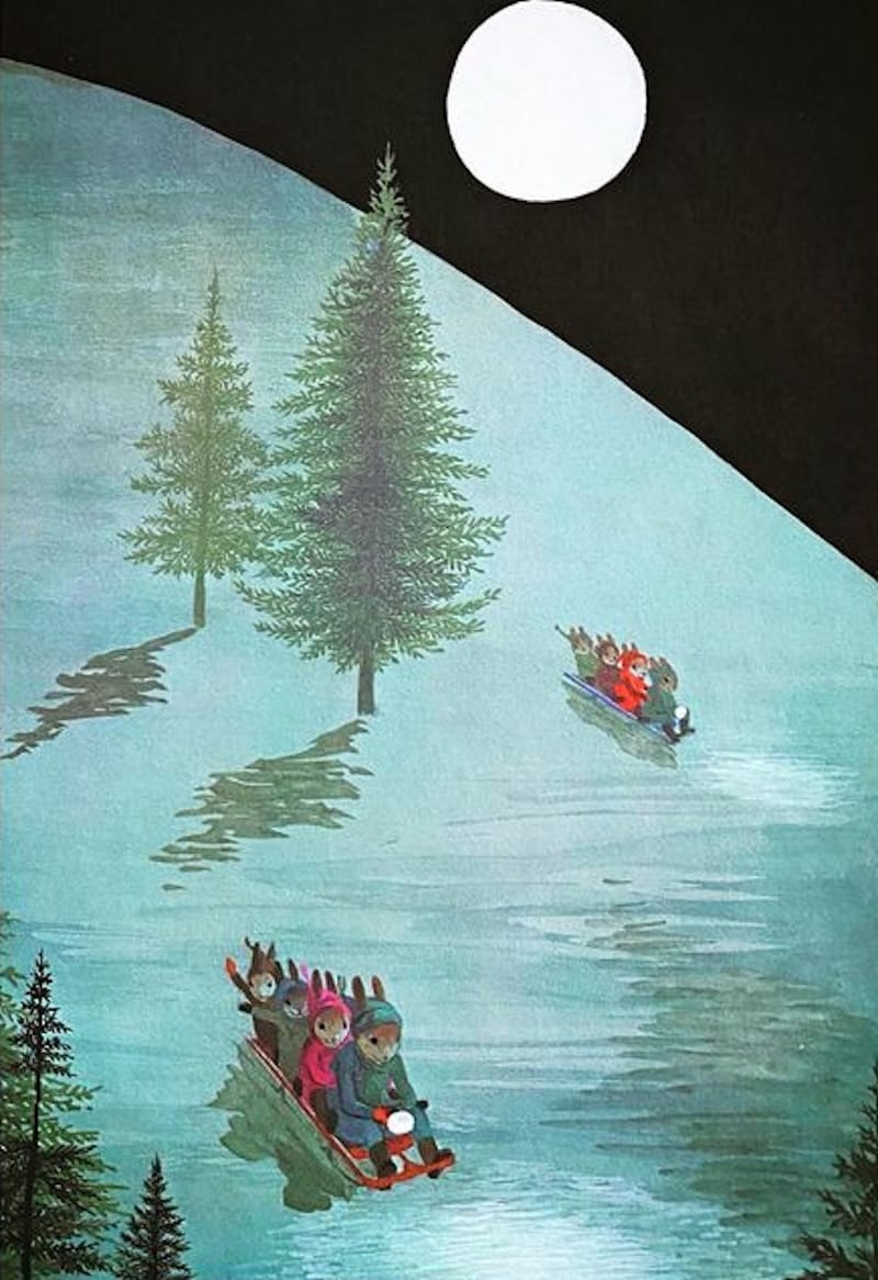 - "The Christmas Party" (1978), written and illustrated by Adrienne Adams. I like Adams best when someone else writes the text. Her stories are always a little basic, but the illustrations go so hard that I'm willing to forgive almost every grievance.