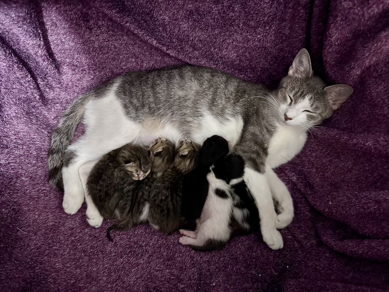 In exciting news, my foster cat had six (!!!) kittens on November 30 and I got to witness the birth. It was very efficient, like watching someone unclog a hairy drain. She handled everything herself, ate all the placentas, and has been purring at a deafening volume ever since. One disgusting thing I didn't know until this experience is that a mother cat consumes her kittens piss and shit until they're three or four weeks old and have control of their faculties. It's done to keep the space clean, avoid attention from predators, help develop the kittens' gut microbiomes, and reabsorb nutrients. The miracle of life, baby.