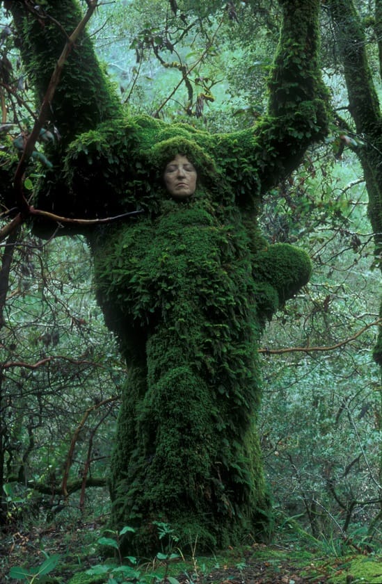 Left: "Tree Goddess" by Jeanne Cameron. Right: "Eyes as Big as Plates # Torleiv" by Karoline Hjorth & Riitta Ikonen.