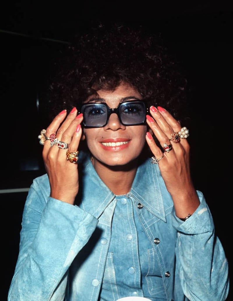 Headscarves a la Samantha and Carrie en route to Laney's baby shower | Yves Saint Laurent jewelry and accessories designer, Loulou de la Falaise in 1975.