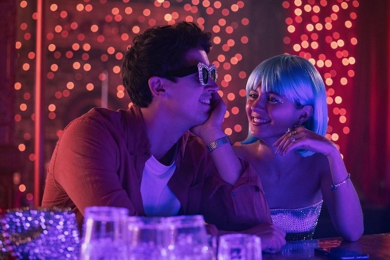 In Harry (Billy Crystal) and Sally (Meg Ryan) fashion, Poppy (Emily Bader) and Alex (Tom Blyth) meet at college when he's tasked with giving her a ride back to their hometown of Linfield, Ohio. He immediately finds her annoying because she is annoying and does enough stupid shit to make even the most patient person have a rage stroke; however, she's also attractive, so spend enough time with her and it's easy to rebrand her irritating personality traits as "quirky." Alex is her introvert opposite, a surly killjoy who likes predictability, rules, and other boring adult nonsense. Like Poppy, he is also attractive, so his rigidity morphs into stereotypically masculine dependability. It's a story we've seen many times: the manic pixie dream girl forces her male counterpart to let loose and have fun, while he in turn makes her understand the appeal of a 401k. If Bader and Blyth weren't so charming, I would have lasted 10 minutes, but they elevate this mediocre script into something I couldn't stop watching.