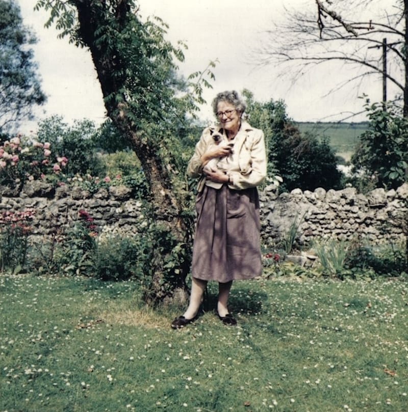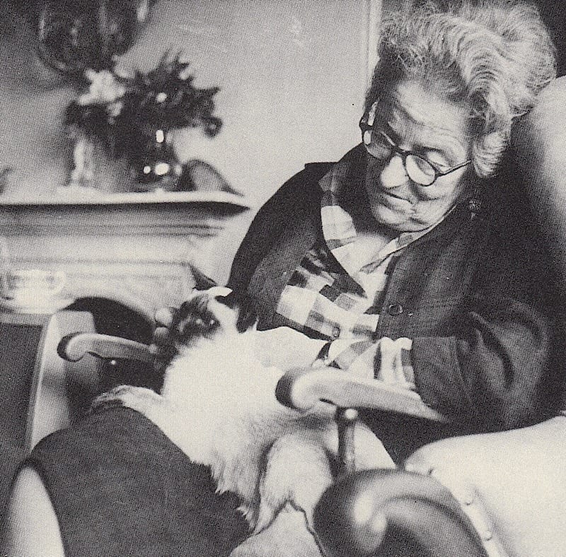 It's Sylvia Townsend Warner with her cat. Idk their name, but "Lolly Willowes" (1926) features a lil scamp named Vinegar.
