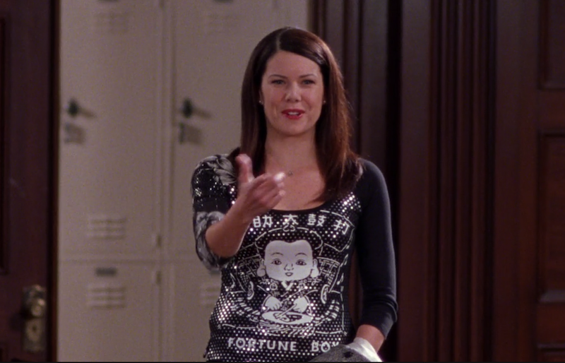 It's a mess of fake lace, sparkle, and racist wtf-ery. Someone needs to douse it in kerosene and give Lorelai a stern lecture on cultural appropriation. As the seasons progress, it only becomes worse. Remember the episode in Season 7 when Rory's Asia trip gets canceled and Lorelai decides to make "crazy Asia" for her? Yeah. That could have been prevented if someone intervened at this crucial moment.
