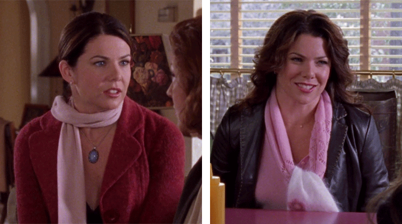 - I can't stress how many ugly outfits Lorelai wears in this episode. Along with all of the aforementioned, she also sports a gray turtleneck that looks itchy and clashes with her skin tone. At the Independence Inn dinner with Gran, she wears a pink, polyester faux wrap top with a belted midsection and a disgusting, gem necklace.