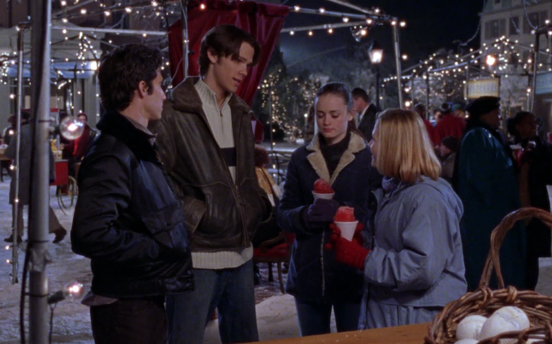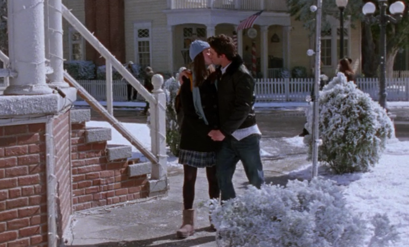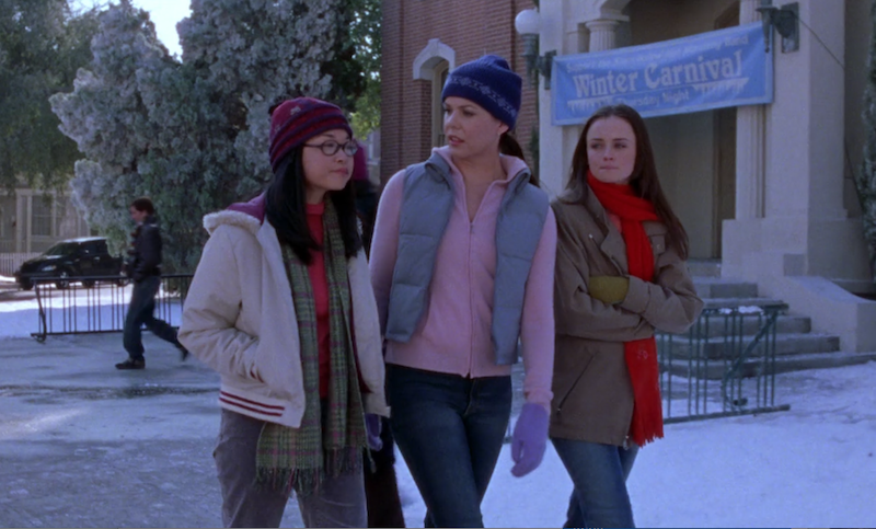 The ugly runs deep in this episode. Lorelai's winter wardrobe is straight-up offensive and makes it blatantly obvious that this show was filmed in California. Check out this "cold winter morning" look: