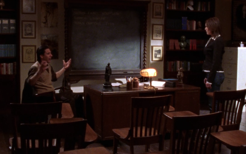 Lorelai corners Max in a classroom and continues to pursue him even though he asks her multiple times to stay the fuck away. The whole encounter is obnoxious, but Lorelai is clearly in the wrong and should have respected his wishes instead of directly violating them. I do hate that he places her on a pedestal and blames her for his actions, though. He tells her,