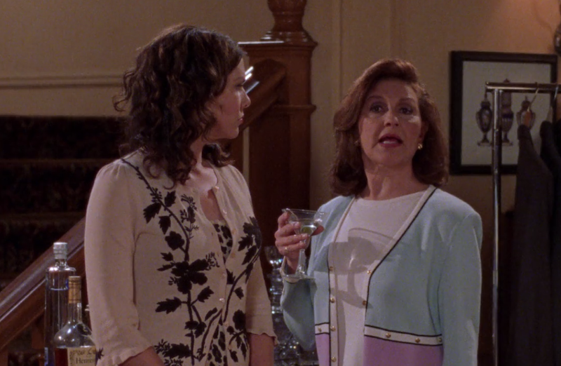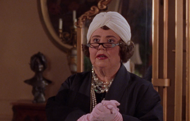 Everything else that happens in this episode is pretty small potatoes. Lorelai helps with Senior Palooza (whatever the fuck that is) and Paris tries to get her to show some cleavage in order to sell tickets for Grad Night. This is inappropriate, but I appreciate Paris' commitment to the cause. Emily needs help picking out an outfit for graduation, so Rory goes over to her house and helps. This is where we meet the delightful Miss Celine, my absolute favorite auxiliary character on this show. She is a true delight and I could listen to her stories about old dead people for hours and never grow bored. One line that I always think to myself is, "Never underestimate the power of a good shirt." I have justified many expensive purchases using this very logic.