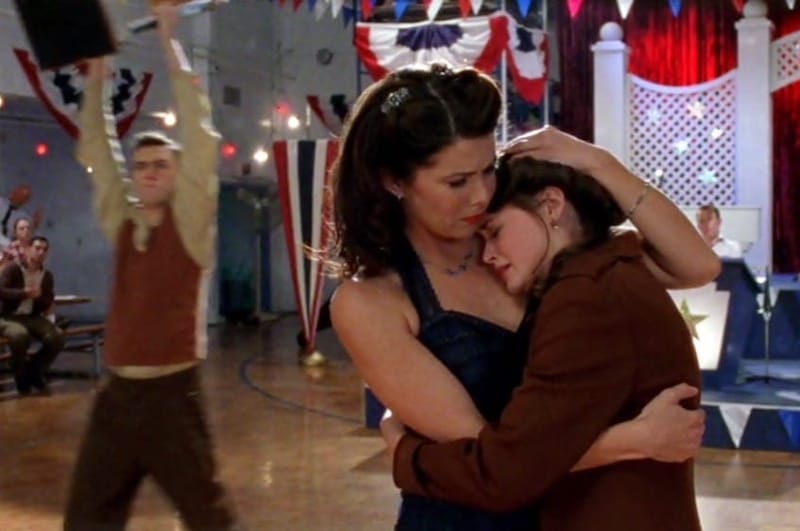 Back in the gym, Lorelai returns and is crestfallen to find that Kirk has won the dance marathon. Rory returns, crying, and Lorelai comforts her as Kirk does his victory lap. It's an iconic, lovely scene and we can all take a collective sigh of relief, for this idiotic love triangle has finally come to a close.