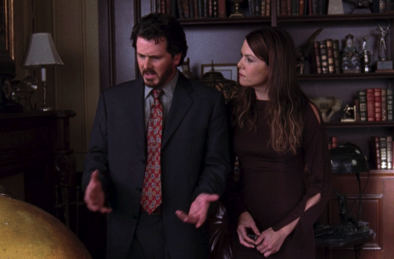 Gran blames Richard for Lorelai's purported failure and much to Emily's delight, he does not take this kindly. I'm firmly on team Richard and don't understand why Gran thinks it's his job to micromanage his adult offspring. After this lunch, Lorelai is feeling so shitty that she finds Luke (who is already all dressed up) and tells him she needs to reschedule their dinner. After a few weird exchanges, she ends up losing her shit on a park bench and murmuring "I don't know what to do" while Luke awkwardly pets her hair. She does tearily blurt out a request for $30k and Luke, flummoxed, stumbles over his words a bit before Lorelai says, "I don't want to talk about it now." Casual manipulation of Luke ... What else is new?