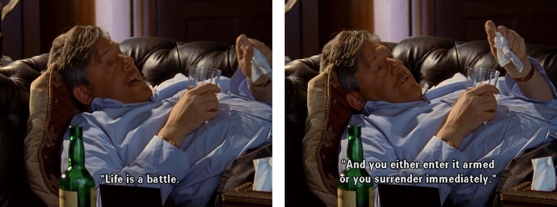 Emily is an incredibly supportive, involved spouse, but there's no way in hell she's slaving over some spiteful old bag's last wishes. Instead of sifting through mountains of possessions in a dusty basement and contacting long-dead florists, she dons a silk robe, sparks up a cigarette, and dedicates the next 24+ hours to alcohol. Her tolerance for bullshit is much higher than mine. I probably would have lost it after finding out about Richard's clandestine Pennilyn lunches and receiving nothing more than a half-assed apology in return.