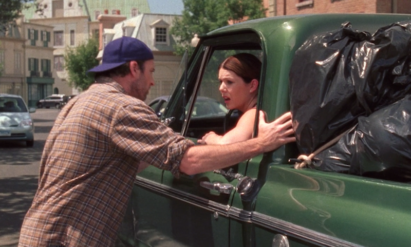 It's Saturday morning, aka Yale move-in day, and Lorelai and Rory are busy packing up all of her remaining junk. Lorelai has borrowed Luke's truck for the occasion and I guess she feels like it's nbd that she has zero clue how to drive it. Just thinking about this fills me with waves of anxiety. I guess she doesn't care that she's shredding Luke's transmission ... the air is rife with clutch smoke. Luke's truck is one of his prized possessions and she should treat it with better care. Lorelai Gilmore always does whatever the fuck she wants, and to hell with everyone else.