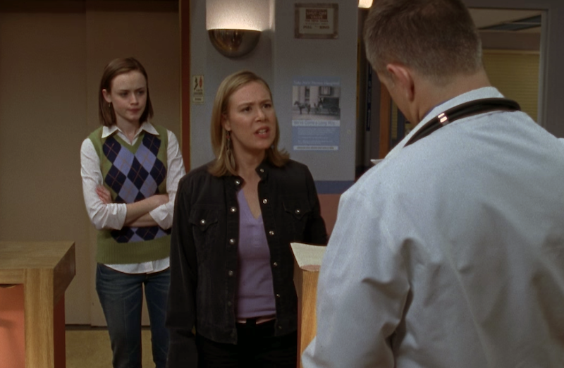 Rory's only real purpose in this episode is to support Paris and Lorelai in their respective crises. Lorelai tells her about Dean and Lindsay's fight at the inn, which certainly piques her interest. She comments, "Maybe they'll make up," in the most half-hearted tone possible. It's clear that something problematic is on the horizon.