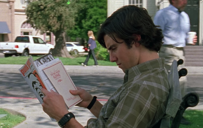 I love that we get to see Jess and Luke on a simultaneous self-improvement streak. The writers poke fun at the cheesy workbook titles and over-the-top suggestions but for once, the show defends their importance. When Lorelai spots "You Deserve Love" peeking out of Jess' bag, she jokes about its stupidity.