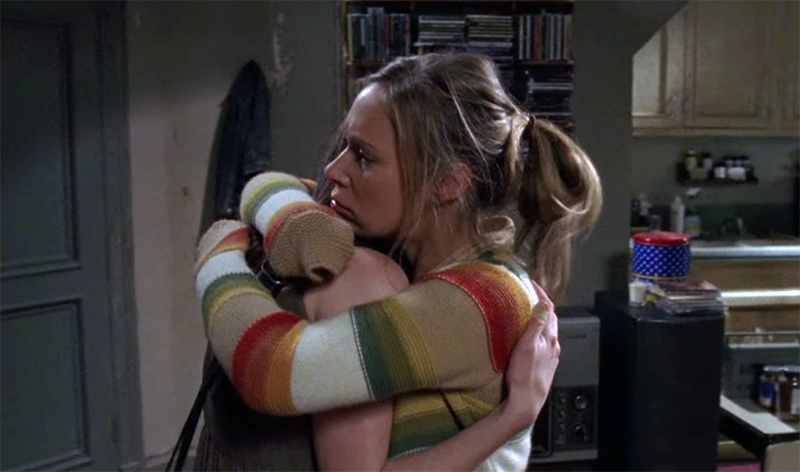Then, after a few months (?) of minimal contact, this motherfucker shows up at the diner with a pawn shop Moose/Elks Club ring and a big, poorly conceived speech that still doesn't include the words "I'm sorry." And yet, due to a combination of low self-esteem and wanting to experience sex for the first time, Lane eats up his bullshit. She's so happy about the engagement that she walks around the diner in a daze, carrying the toaster to a customer in place of their order. If only she could see that a future with Zack consists of nothing but skidmarked underwear and dead dreams, perhaps she would rethink her answer.