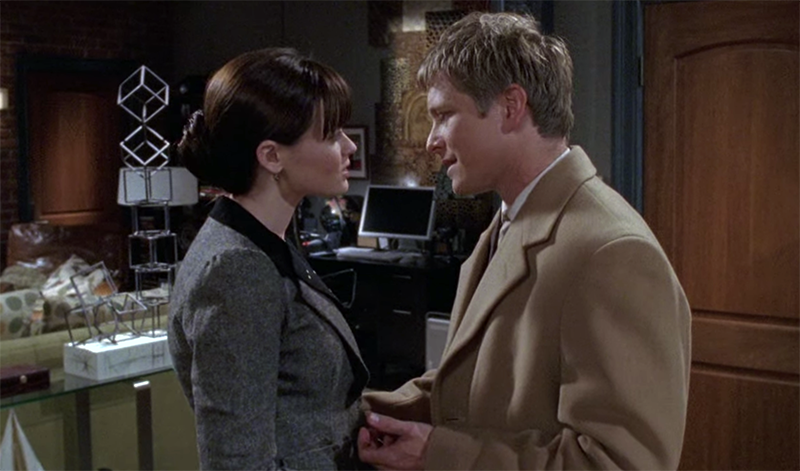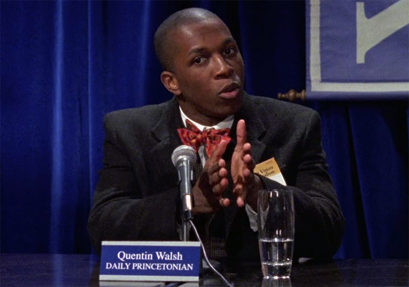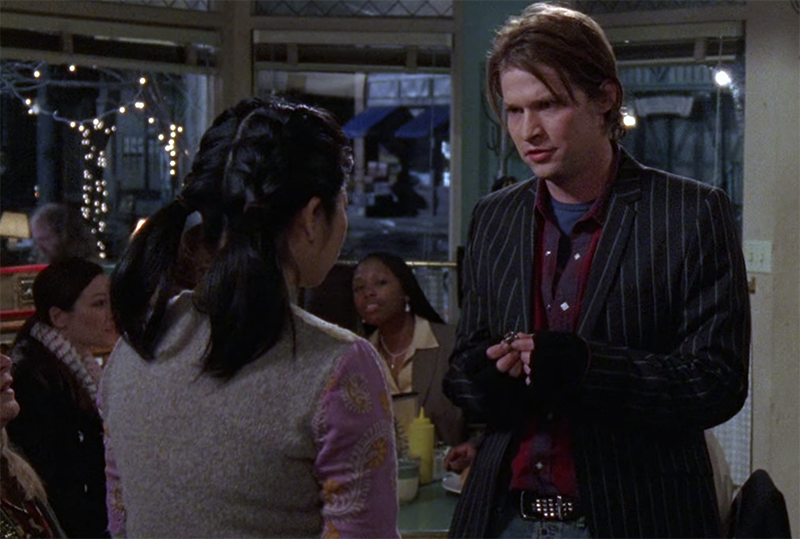 Seeing as there are so few Black characters on this show, Chris and Lorelai come off as racist in their disdain for Quentin, AKA Pompous Princeton Guy, AKA Leslie Odom, Jr. They contemplate throwing Milk Duds at him over his decision to wear a bow tie (and his general demeanor), but praise Rory's use of "perspicacious," as if it didn't come directly from an SAT prep book. This is the problem with many of these shows from the early aughts. The only diverse characters are either shat on, ignored, villainized, or only there to support a larger storyline.