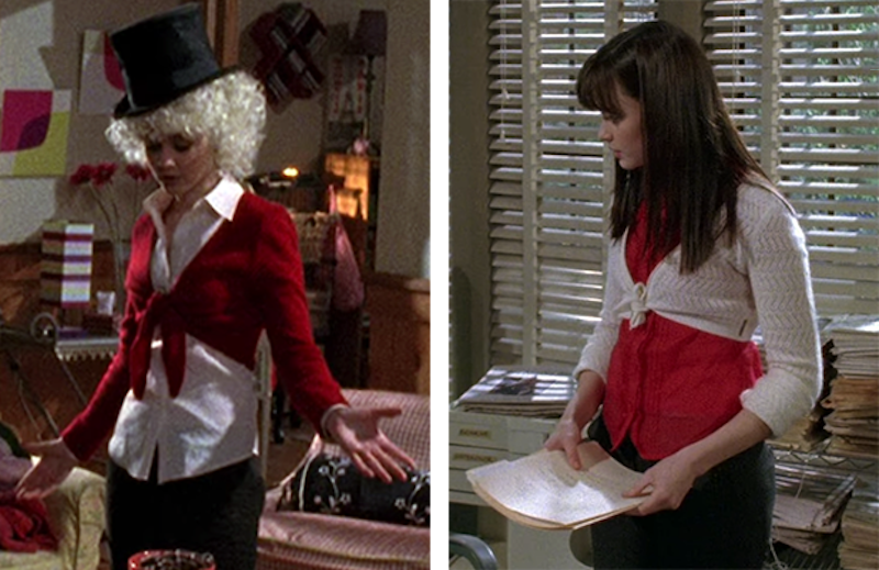 What is it about the early 2000s that made people want to layer their clothes in the most nonsensical ways? I can get behind a shrug if it's being used to cover bare shoulder, but not when it's thrown over a button-down shirt and tied right under the boobs. This takes it from utilitarian option to style choice, which makes me all the more critical.