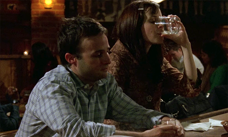Rory has never been more relatable than when she's at the bar post-Logan fight, teetering on drunken belligerence. I want to see more of this unfiltered person (not necessarily under the influence of alcohol) and less of the tightly wound perfectionist. Rory has been such a high-achieving rule follower her entire life that it's rare to see her display negative emotions so blatantly. When Doyle, who has been "mixing beer and wine ... and Malibu Rum," saunters over, he and Rory have a vulnerable conversation about their recent breakups. Paris, who has been neglecting sleep in lieu of "Saw II" and her crafts corner, ended things with Doyle when he revealed, in a fit of rage, that he had advised Rory against turning one of her Yale Daily News pieces into a series.