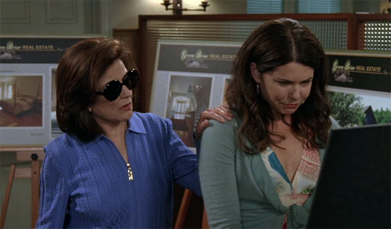 Something about Lorelai publicly degrading her injured mom in blackout sunglasses always makes me giggle. I give the “one-liner” award to Lorelai after she calls her mother a martyr. But I love this whole exchange: