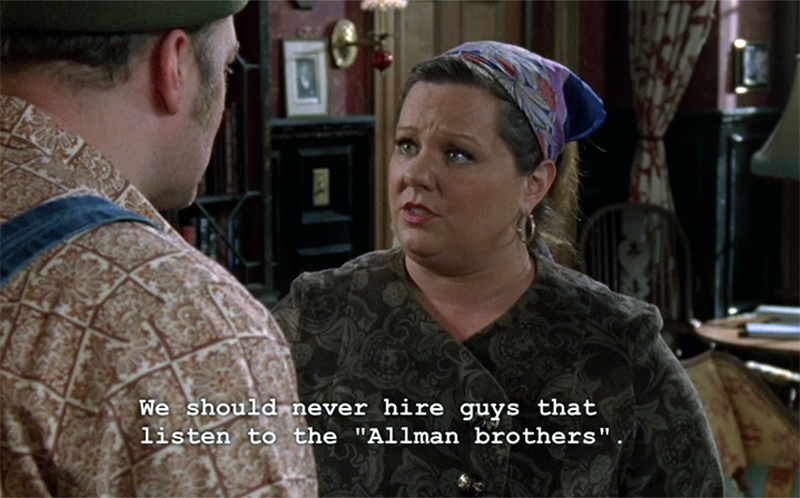 Lorelai shows up unannounced at Sookie and Jackson’s at what looks to me like midnight. Do you know how often I let in anyone unannounced, even if it’s in the middle of the afternoon? Never. In fact maybe five or seven years ago, I showed up unannounced at my BFF’s place in Oakland after hosting an event there, and it was probably also around 11:30 p.m. I told her my phone was dead, and I needed to charge it, and there was this insanely hot man who had messaged me on Grindr. She never let me in, but instead let me use an outlet outside and brought a charger out. Recounting this to you now, it’s one of those times I think of myself in the present day and go, “I’ve always been a well-adjusted adult,” and then remember shit like this. WTH was I doing?