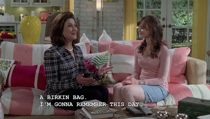 Rory is young, so I'll forgive her for not tearing Logan a new asshole during this exchange involving the Birkin bag: