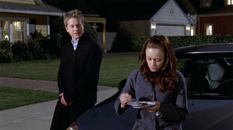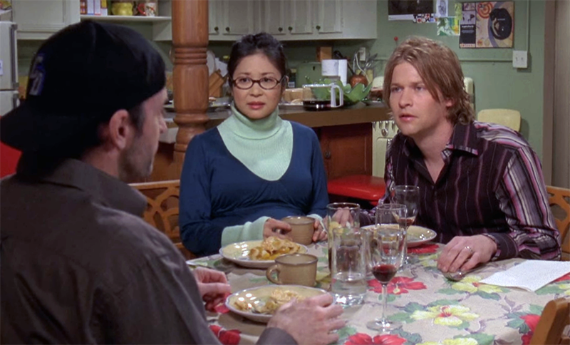 Once Luke accepts the godfather role, Zack clings to him like a genital wart, showing up at the diner early and ruining his quiet time with questions about circumcision. "So, you being a guy, I figured I could use your input on this. You know, penis-wise. What's yours like, what do you like to see on others, and can we touch tips?" Initially, my husband thought Zack was jealous of his future kids and trying to co-opt Luke as his own godfather, but it turns out he was just panicking about finding his "dad mode." All I can do is sigh and hope that Zack's IQ miraculously increases twenty points before the birth of his children.