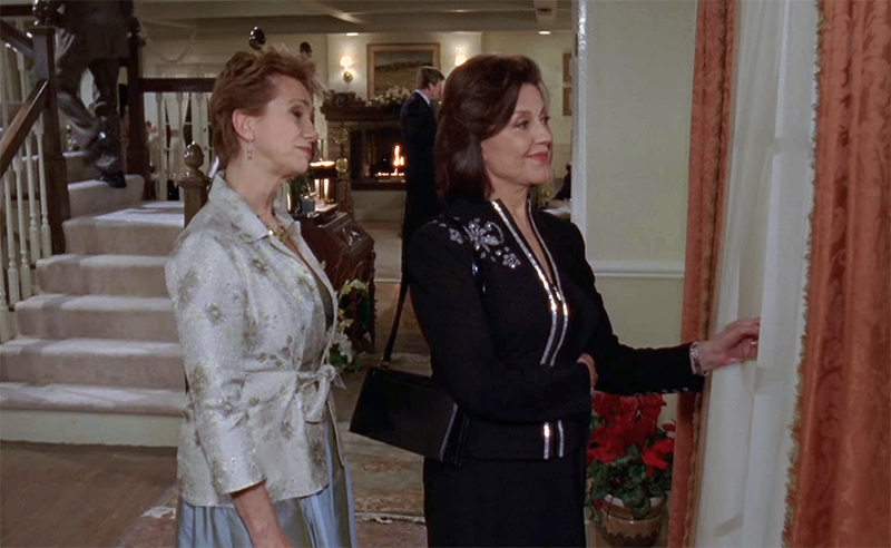 I appreciate that Mia (Kathy Baker) goes for an unconventional bridal look, but a bow on the chest and a bow at the waist is too many fucking bows. The necklace looks like something Liz would make, which you hopefully know is an insult.
