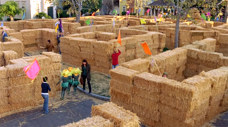 The show should score more big emotional moments to diegetic Grant Lee Phillips. After Lorelai and Luke apologize to each other, we get a nice crane shot of the entire maze as "Raise the Spirit" plays. This is probably my second favorite troubadour moment, right behind the time he plays "Mona Lisa Smile" at the Firelight Festival.