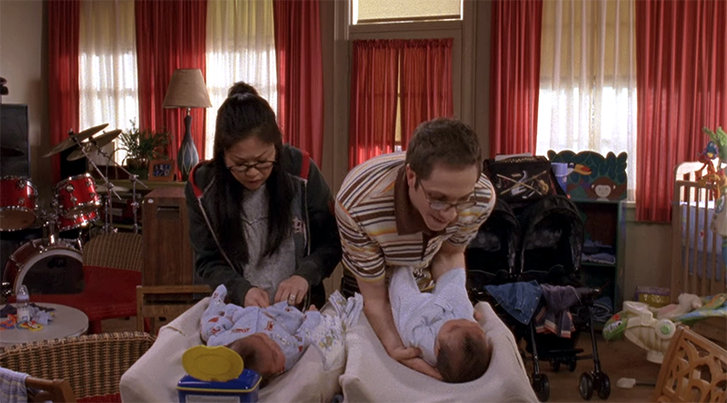 The only other thing left to discuss is Lane's sad fucking life with Zack, who the writers are now desperately trying to rehab. Mere episodes ago, this guy didn't know how to use a condom and now we're supposed to believe he has emotional intelligence? I can't suspend my disbelief, nor do I feel like celebrating with reduced fat Pringles. (Side note: was this when manufacturers were shoving olestra into every chip and giving diarrhea to the masses? Were these diarrhea Pringles?) It's unjust that this stale taquito gets to go on tour while martyr Lane stays behind to care for the boys.