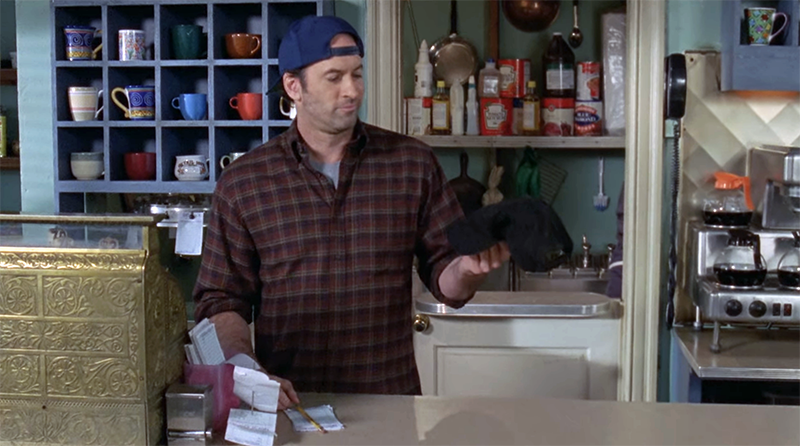 To make matters worse, Luke wasn't communicating fuckall by wearing the hat Lorelai gave him. His black hat was stuck behind the dishwasher and he probably only wore the blue one because he was desperate for something to cover his bald spot. The friendliness Lorelai thought he was signifying was all in her head. Luke does seem to recognize his loneliness in the wake of the canceled boat trip, though. The one time he decides to go out of his comfort zone and shake things up, it all falls apart. In good dad fashion, he doesn't make April feel guilty for bailing and supports her science camp dreams, but the whole ordeal amplifies what is lacking in his life. These are all minor revelations, but enough to motivate these characters to stop self-sabotaging and figure out how to pursue what makes them happy.