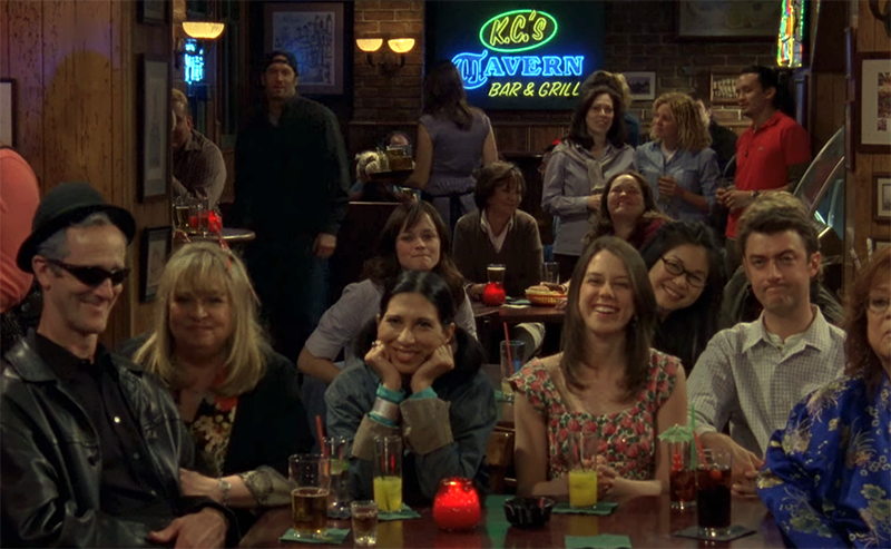 Zack is disappointed by Kirk's cover of Culture Club's "Do You Really Want to Hurt Me," noting, "If you're gonna do Boy George, at least commit to the high heels and the makeup." While we don't get to hear it, Zack later commends Gypsy's "mean Pat Benatar." This episode is a good example of townie antics done right. I love the idea of Lorelai's drunk rendition of "I Will Always Love You" turning into an accidental Luke serenade, thereby fueling town gossip for weeks to come.